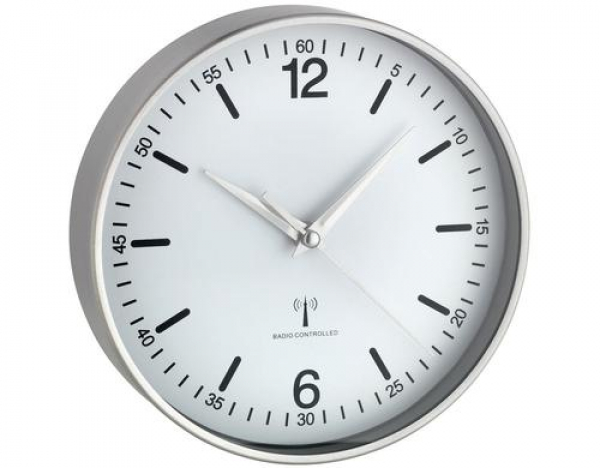 TFA Dostmann Funk-Wanduhr mit Aluminium-Rahmen 19.5 cm, Silber/Weiss / ohne Batterie / Thema: Wanduhr