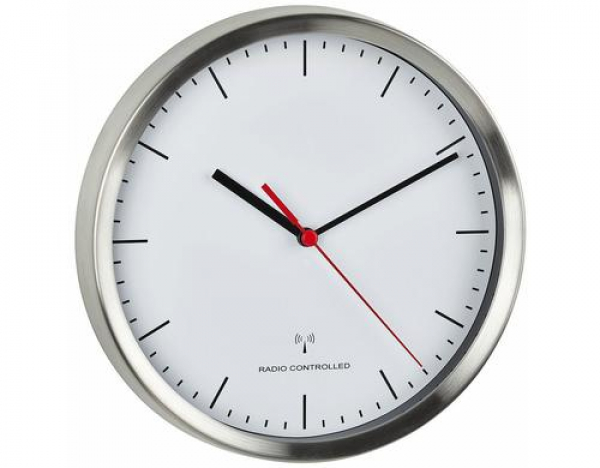 TFA Dostmann Funk-Wanduhr mit Edelstahl-Rahmen Durchm. 22 cm, Silber/Weiss / ohne Batterie / Thema: Wanduhr
