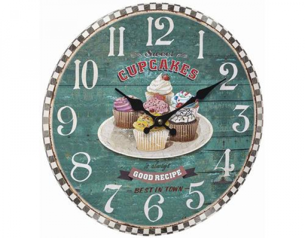 TFA Dostmann Wanduhr Vintage Cupcakes Durchm. 33.7 cm, Mehrfarbig / ohne Batterie / Thema: Wanduhr