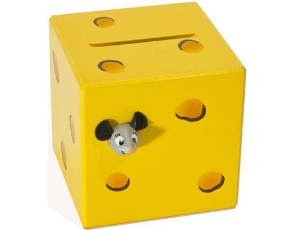 Weizenkorn Spardose Käse/Maus / Holz, 9x9x11 cm (BxHxT) / Thema: Spardosen