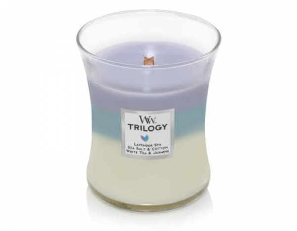 Woodwick Duftkerze Trilogy Calming Retreat Medium Jar / Trilogy Medium Jar / Thema: Duftkerzen