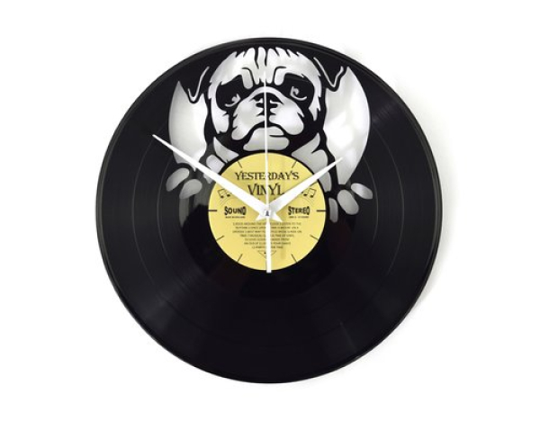 Yesterday's Vinyl Wanduhr Hund Durchm. 30 cm, Gold/Schwarz / Vinyl(PVC),30x2.5cm(DxT),exkl.1xAA Batterie / Thema: Wanduhr