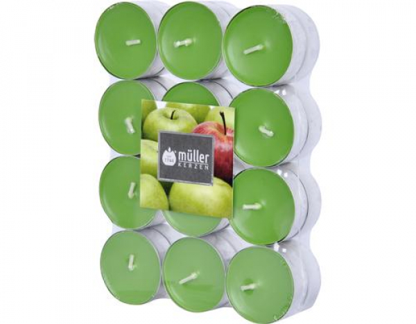 müller Kerzen Duftkerze Juicy Apple 24 Stück / grün 1.5x3.9 cm, in Aluhülse / Thema: Duftkerzen