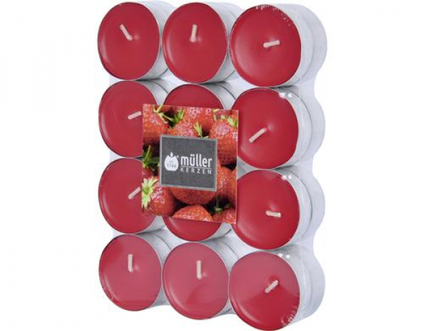 müller Kerzen Duftkerze Strawberry Love 24 Stück / rot 1.5x3.9 cm, in Aluhülse / Thema: Duftkerzen