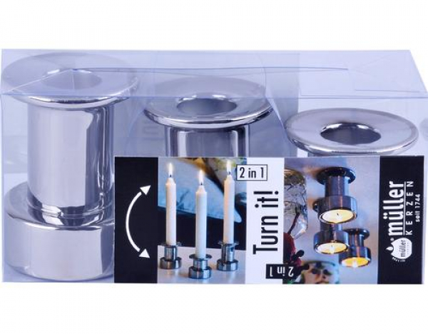 müller Kerzen Kerzenhalter 2 in 1 3 Stück, Silber / silber / Thema: Kerzenständer und -halter