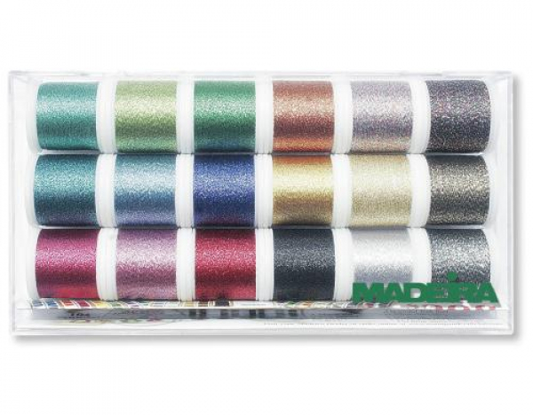 Madeira Näh- und Stickgarn Metallic Supertwist Garnbox Mehrfarbig / Garnbox, 18 Spulen à 200m / Thema: Garn