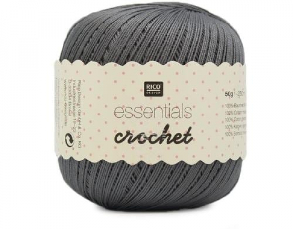 Rico Design Häkel- und Strickgarn Essentials Crochet 50 g, Grau / 50 g, 280 m, 100 % CO / Thema: Garn