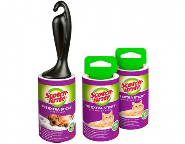 Scotch-Brite Kleiderroller Pet Extra, 1 Roller mit 2 Ersatzrollen / für Tierhaare, 1 Roller, 2 Ersatzrollen / Thema: Fusselentferner