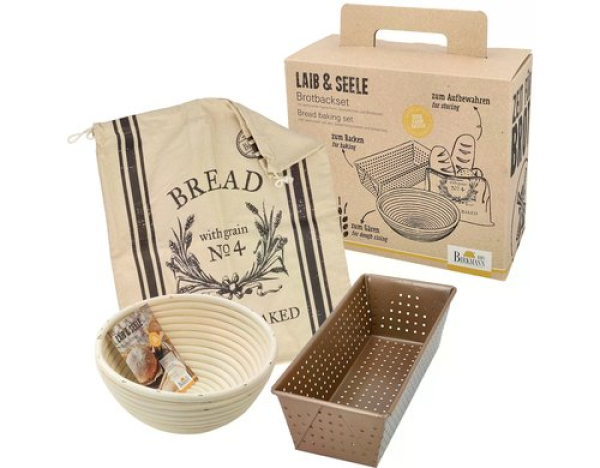 RBV Birkmann Backformen-Set Laib und Seele 3 -teilig / Kastenform 25cm, Gärkörbchen, Brotbeutel / Thema: Backform