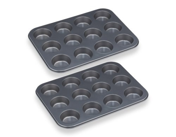 relaxdays Muffin Backform 2 x 12 Mulden / Set mit 2 Formen / Thema: Backform