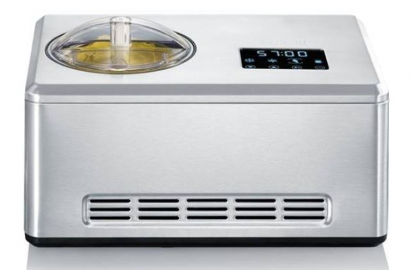 Die praktische 2-in-1-Eismaschine ist ideal für die Zubereitung von Speiseeis, Frozen Yoghurt und Sorbet - in weniger als 30 Minuten. Optisch kommt der Küchenhelfer in einem hochwertigen Edelstahlgehäuse daher, die Bedienung erfolgt über einen LED-Touchscreen. Der integrierte Digitaltimer lässt sich minutengenau einstellen, während die Temperatur über ein Display abgelesen werden kann. Dank der innovativen 2-in-1-Funktion "warm & kalt" können Sie auch ganz einfach Joghurt zubereiten, der nach der Zubereitung automatisch abgekühlt wird. Der grosse Eisbehälter mit einem Fassungsvermögen von 2 Litern sorgt dafür, dass die Eismaschine auch für Familien geeignet ist. Entdecken Sie leckere Rezepte für Eis, Joghurt und mehr in dem beliebten Rezeptbuch.