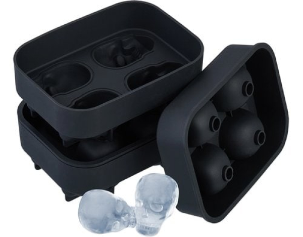 relaxdays Eiswürfelform Totenkopf 2 Stück, Schwarz / Silikon, Schwarz / Thema: Eiswürfelform