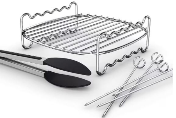 Maximieren Sie die Grillfläche Ihres Airfryers mit dem Grillrost-Set. Grillen oder braten Sie leckere Burger, Hähnchenflügel, Fisch und vieles mehr – einfach, schnell und gesund. Verwenden Sie die Spiesse, um Gemüse- oder Fleischspiesse zuzubereiten.