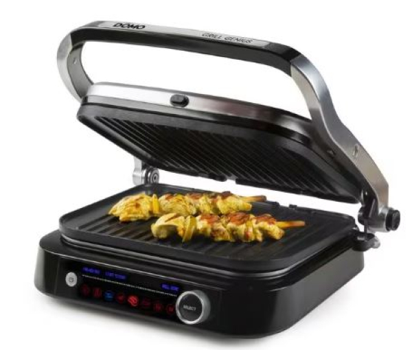 Der Digitale Kontaktgrill DO9249G von Domo bietet Ihnen eine vielseitige und komfortable Möglichkeit, Fleisch und andere Köstlichkeiten zu grillen. Mit seiner automatischen Dickenmessung können Sie sicher sein, dass Ihr Fleisch immer perfekt gegart wird, ganz gleich, ob es sich um ein zartes Steak handelt oder um Fisch. Die Auswahl verschiedener Garmethoden wie rare, medium und well done ermöglicht es Ihnen, den gewünschten Gargrad genau einzustellen. Die intelligente Betriebsfunktion misst die Dicke des Grillguts und passt die Garzeit automatisch an, um optimale Ergebnisse zu erzielen. Für unterschiedliche Zubereitungen stehen Ihnen 8 Automatikprogramme zur Verfügung, die Ihnen die Zubereitung erleichtern. Die herausnehmbaren Backbleche sind mit einer hochwertigen Antihaftbeschichtung versehen, um ein Anhaften des Grillguts zu verhindern und die Reinigung zu erleichtern. Diese Backbleche sind spülmaschinengeeignet. Das elegante Edelstahl-Design des Grills verleiht Ihrer Küche einen stilvollen Touch. Der Grill ist 180° aufklappbar, so dass Sie ihn auch als Tischgrill oder zum Barbecue verwenden können. Dank der innovativen Wärmeableitungstechnologie bleibt das Gehäuse Cool-Touch, um Verbrennungen zu vermeiden. Eine Auffangschublade fängt überschüssiges Fett auf, was die Reinigung weiter erleichtert. Die Kabelaufbewahrung und rutschfesten Füsse sorgen für eine komfortable und sichere Handhabung des Grills. Mit einer Backfläche von 31.3 x 24.5 cm und den kompakten Geräteabmessungen von 38.2 x 32.1 x 18 cm passt der Kontaktgrill problemlos in Ihre Küche und bietet dennoch ausreichend Platz für leckere Grillgerichte.