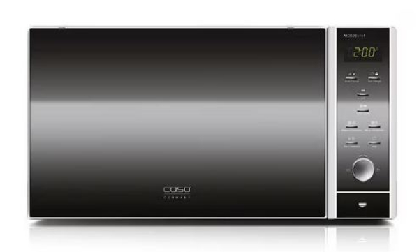 Die Caso MCG25 Chef Mikrowelle ist ein wahres Multitalent, mit dem schneller und energiesparender Gerichte zubereitet werden können als mit einem herkömmlichen Backofen. Die Mikrowelle ist mit einem Grill und Heissluft ausgestattet, sodass sie zum Erhitzen, Backen, Grillen und Auftauen genutzt werden kann. Bei der Heissluftofenfunktion stehen 10 Temperaturen von 110-200 °C zur Verfügung, die sich für die Zubereitung von unterschiedlichen Lebensmitteln nutzen lassen. Der Timer mit Endsignal ertönt, wenn die Backzeit abgeschlossen ist.