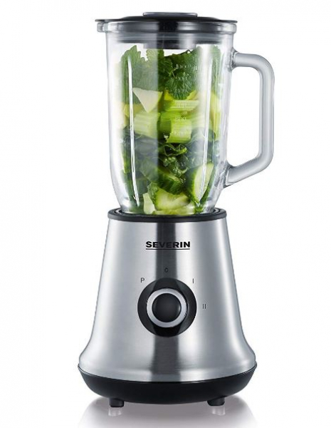 Der Standmixer SM 3734 von Severin bietet zwei Geschwindigkeitsstufen mit zusätzlicher Pulsschaltung (max. 22.000 U/min), für perfekte Mix-Ergebnisse. Der abnehmbare Mixbehälter aus Glas mit Ausgusszotte ist auch zum Crushen von Eis geeignet. Im Mixbehälter-Deckel befinden sich noch eine Nachfüllöffnung und ein integrierter Messbecher. Die Edelstahl-Messereinheit ist zur einfachen Reinigung abnehmbar. Im Bereich Sicherheit überzeugt der Standmixer SM 3734 mit seiner Sicherheitsabschaltung und rutschfesten Gummifüßen.