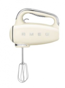 Der elektrische Handrührer von Smeg im 50's Retro Style bietet vielfältige Zubereitungsmöglichkeiten. Ob süß oder herzhaft, die unterschiedlichen Zubehöre liefern optimale Ergebnisse. Mit dem klassischen Rührbesen lassen sich leichte Teige herstellen, der Haken eignet sich für kräftiges Kneten und der Schneebesen sorgt für fluffig-festen Eischnee und Schlagsahne. Das Bedienfeld blendet über ein hintergrundbeleuchtetes LED-Display Geschwindigkeit und Betriebszeit ein. Die Anzeige verschwindet beim Ausschalten und zeigt das Chrom des Griffs in seiner ganzen Eleganz. Über zwei Funktionstasten können bis zu neun Geschwindigkeitsstufen zum Mixen, Aufschlagen sowie die Turbofunktion ausgewählt werden. Dank der rutschfesten Füße hat der Handmixer einen stabilen Stand, wenn man ihn zwischendurch oder nach dem Rühren und Kneten abstellen möchte. In der praktischen Stofftasche kann das mitgelieferte Zubehör leicht aufbewahrt werden.