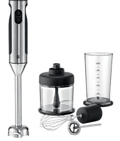 Das Stabmixer-Set Lineo besteht aus einem Stabmixer, einem Zerkleinereraufsatz, einem Milchaufschäumeraufsatz und einem Schneebesenaufsatz. Der Stabmixer WMF der Serie LINEO mit Cromargan Voll-Edelstahlgehäuse überzeugt mit einer 700-Watt-Leistung und einer variablen Geschwindigkeitseinstellung mit Turbo-Funktion für maximale Leistung. Zudem erreicht der Stabmixer LINEO bei 13.000 U/min eine Geschwindigkeit von 125 km/h. Der ergonomische Anti-Rutsch-Griff macht den Stabmixer LINEO maximal komfortabel und sicher und der clevere Saugnapf hilft bei der Kabelfixierung. Der Pürierstab ist abnehmbar und in der Spülmaschine leicht zu reinigen. Im Lieferumfang des Stabmixers LINEO ist ein 1 Liter Mixbehälter mit Skala enthalten.