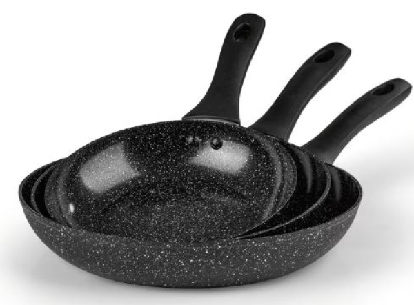 Braten mit weniger Fett, aber mit viel Stil? Mit den BRATmaxx Aluminium-Pfannen im 3er-Set ist das kein Problem! Die Pfannen mit je einem Durchmesser von 20, 24 und 28 cm lassen kaum noch etwas anbrennen und benötigen dazu auch noch weniger Fett als herkömmliche Pfannen! Dafür sorgt die 2-lagige ILAG Xeradur 2 Keramikbeschichtung mit Antihaftfunktion, dank welcher das Bratgut einfach ohne lästiges Anhaften wieder entnommen werden kann. Fast wie von selbst gleiten Steak, Spiegeleier und Gemüsepfannen ab sofort aus der Pfanne auf den Teller! Während das moderne Design in Granit-Optik ein echter Hingucker ist, sorgt die Pfanne ohne PFAS und Nickel für ein gutes Gefühl beim Zubereiten des Abendessens für die ganze Familie. Der hitzebeständige Cool-Touch-Griff schafft derweil optimalen Bedienkomfort. Der Clou: Die Pfannen mit praktischer Aufhängungsöse sind ist aus leichtem Aluminium geschmiedet und begleiten dich bei nahezu all deinen kreativen Küchenideen. Selbst Überbacken im Backofen ist kein Problem (backofengeeignet bis max. 180)! Zaubere saftige Putenschnitzel, leckere Kartoffelpfannen und andere Lieblingsgerichte der ganzen Familie und zwar stets mit dem von dir gewünschten Bräunungsgrad und mit köstlichen Röstaromen. Für die ultimative Flexibilität ist die Pfanne für alle Herdarten geeignet auch für Induktion und sogar spülmaschinengeeignet! Easy, lecker, fettarm braten! Mit den Aluminium-Pfannen von BRATmaxx im praktischen 3er-Set. Backofengeeignet bis max. 180 °C.
