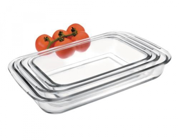 Ibili Auflaufform-Set 3 Stück, Eckig, Transparent / 30x18, 34x24, 40x23cm / Thema: Auflaufform