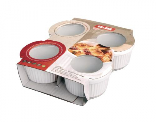 Ibili Auflaufform-Set Crème Brûlée 4 Stück, Rund, Weiss / 4 Stück, Durchmesser 9cm / Thema: Auflaufform