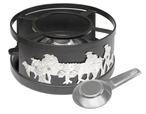Heidi Cheese Line Fondue-Rechaud Appenzell Silver Schwarz/Silber / Metall/Holz, Sockel und Pastenbrenner, 21cm / Thema: Fondue-Rechaud