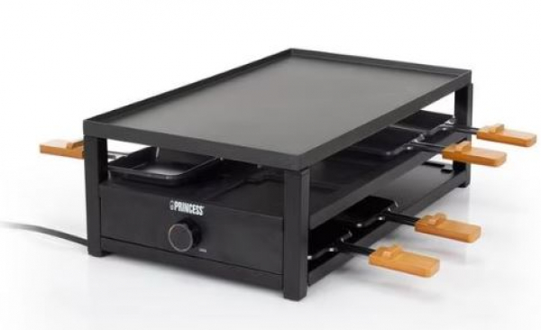 Dieses Princess 162655 Black Steel Raclette mit einem mattschwarzen Rahmen als Gehäuse ist ein Blickfang auf jedem Esstisch. Das Gourmet-Set ist für 8 Personen geeignet und wird mit einem Thermostat und einem Parkdeck zur Aufbewahrung gebrauchter Pfannen geliefert. Die Gourmetpfannen sind mit Griffen aus echtem Bambus versehen, die dem Artikel einen einzigartigen Look verleihen. Was diesen Artikel besonders einzigartig macht, ist, dass die Pfannen auch von der Seite her entnommen werden können. Dies ist besonders praktisch für Personen, die am Kopfende des Tisches sitzen.