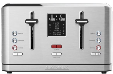 Dieser vielseitige 4-Scheiben-Toaster mit Brötchenaufsatz sorgt für perfekte Ergebnisse bei jeder Brotsorte. Mit 7 Toastprogrammen für Vollkornbrot, Weissbrot, Bagels, süsses Brot und mehr sowie 7 einstellbaren Bräunungsstufen ist für jeden Geschmack etwas dabei. Dank der Speicherfunktion können Sie Ihre bevorzugten Einstellungen ganz einfach abspeichern und wieder abrufen. Die extra breiten Toastschächte bieten sogar Platz für Hamburgerbrötchen. Das benutzerfreundliche LCD-Display mit Countdown-Timer zeigt die verbleibende Toastzeit an, während Funktionen wie Aufwärmen, Auftauen und Hi-Lift das Toasten noch komfortabler machen.