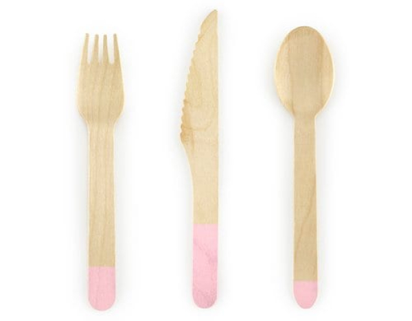 Partydeco Einweg-Besteckset Holz 18 Stück Hellrosa / hellrosa, 16 cm / Thema: Einwegbesteck