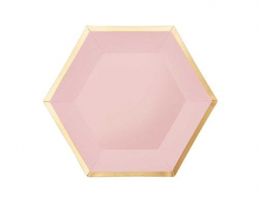 Rico Design Einwegteller Sechseck 16 cm, 10 Stück, Gold/Rosa / rosa-gold, 10 Stück, 275 g/m2 / Thema: Einweggeschirr