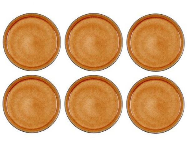 Bitz Frühstücks- & Dessertteller Durchm. 21 cm, 6 Stück, Schwarz/Amber / 6 Stk., 21cm Durchmesser, Stoneware / Thema: Teller