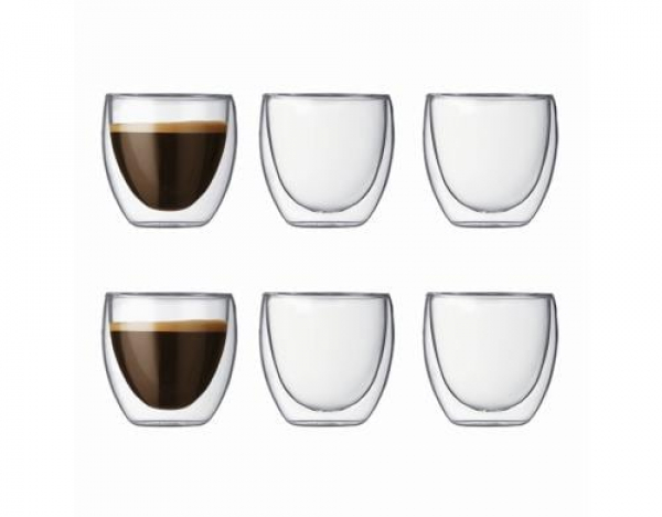 Bodum Thermobecher Pavina 80 ml, 6 Stück, Transparent / 6 Stück, doppelwandig / Thema: Tassen & Becher