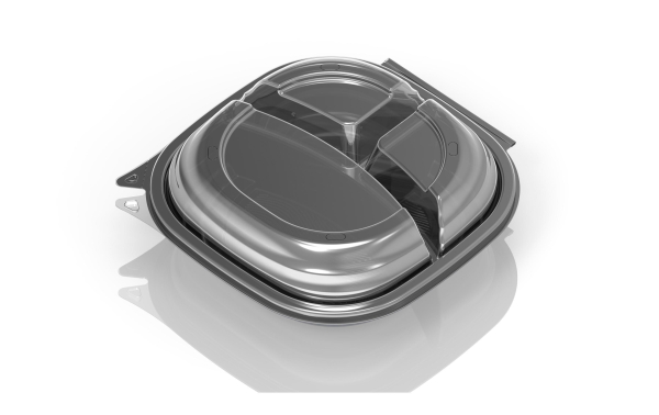 Duni Einweg-Schale Vista 25 Stück, 3-teilung, 650/216/216 ml / 650/216/216ml, 25 Stk. Grau mit Deckel / Thema: Einweggeschirr