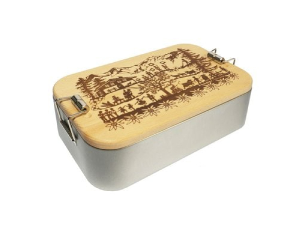 Trendform Lunchbox Metall Swiss Tradition Braun, Silber / Buchenholz/Blech, 19x11.5x6.5cm (LxBxH) / Thema: Lunchboxen