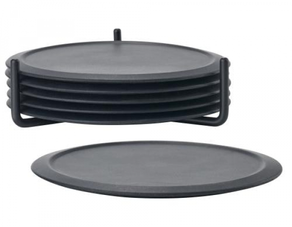 Zone Denmark Glasuntersetzer Singles 6 Stück, Schwarz / Grösse 10x3.1cm, Metall/Silikon / Thema: Untersetzer