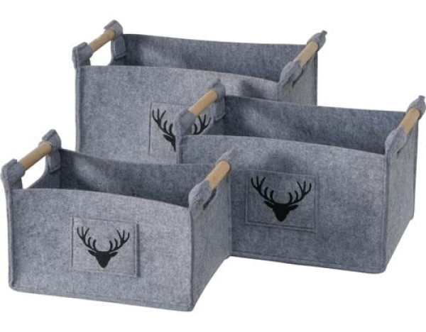 Boltze Aufbewahrungskorb Karly 3er Set, Grau / Set Gesamt: 3 Set / Thema: Aufbewahrungsbox