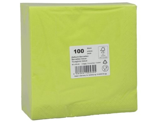 ELCO Papierservietten 40 cm x 40 cm, 100 Stück, Grün / 3 lagig, Zelltuch, Limette / Thema: Servietten