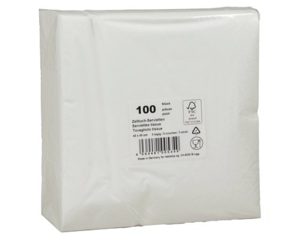 ELCO Papierservietten 40 cm x 40 cm, 100 Stück, Weiss / 3 lagig, Zelltuch, Weiss / Thema: Servietten