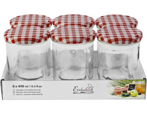 Einkochwelt Einmachglas 6 Stück, 440 ml, durchm. 82 mm / 6 Stück, 440 ml, D: 82 mm / Thema: Einmachgläser