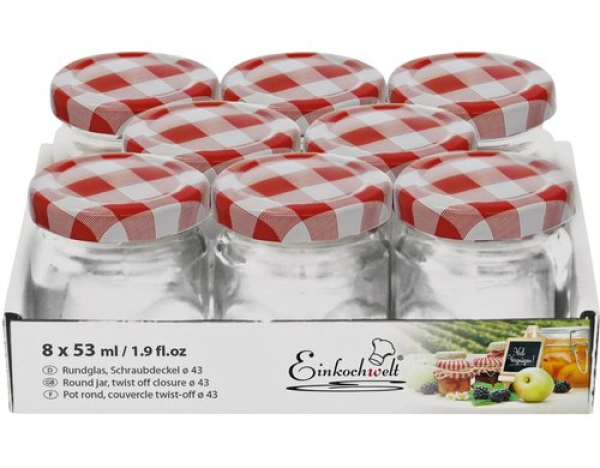 Einkochwelt Einmachglas 8 Stück, 53 ml, durchm. 43 mm / 8 Stück, 53 ml, D: 43 mm / Thema: Einmachgläser