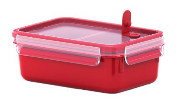 Emsa Clip & Close Micro 1,0 L eckig rd / rot, rechteckig, mit Deckel und 2 Einsätzen
