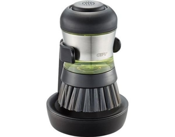 GEFU Spülbürste Swift mit Spülmittelbehälter, Schwarz / mit Abtropfständer / Thema: Reinigungsbürsten