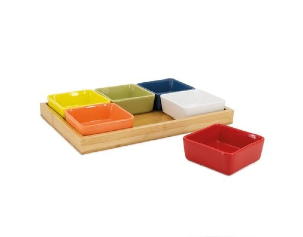 Remember Servierplatte Nummer 1, 7-teilig, Bambus / Bambus/Porzellan, Bunte Farben / Thema: Servierplatten