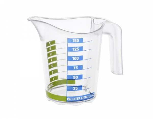 Rotho Messbecher Domino Dekor 1.5 dl, Transparent / 102x69x89 mm / Thema: Messbecher