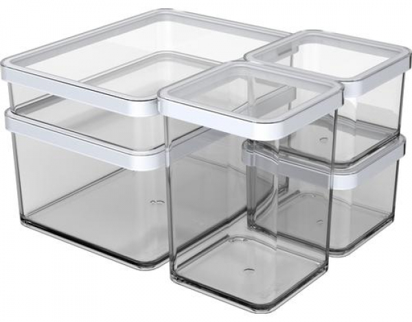 Rotho Vorratsdose Loft 5 Stück, 5.25 l, Transparent/Weiss / 26 x 21 x 15,5 / Thema: Vorratsdosen