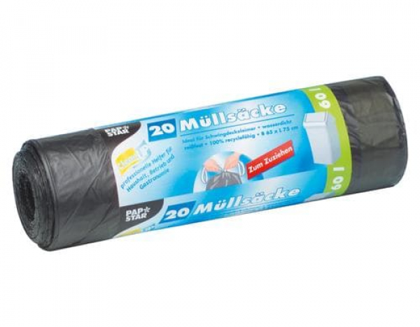 Weita Kehrichtsack Papstar 60 l, 20 Stück / Pack à 20 Stk, Zugband / Thema: Müllbeutel