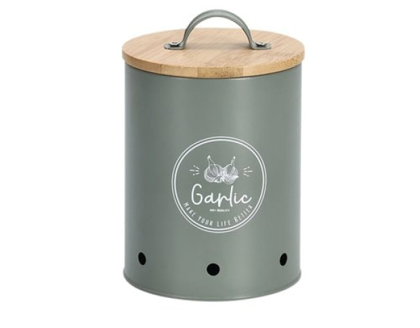 Zeller Present Knoblauchtopf -Garlic- / Bambus/Metall, durchm. 11,3 x 14,3 - 17 cm / Thema: Lebensmittelspender