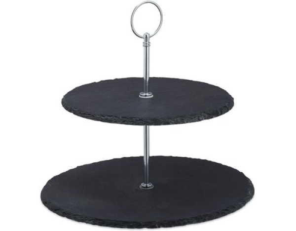 relaxdays Etagere 2-stufig, Anthrazit/Silber / Schiefer / Thema: Etagere & Tortenständer
