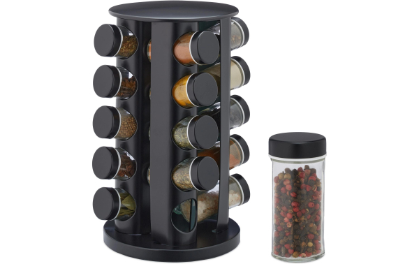 relaxdays Gewürzkarussell 20er Set Schwarz/Transparent / Edelstahl, mit 20 Gläser, Schwarz / Thema: Küchenutensilienhalter