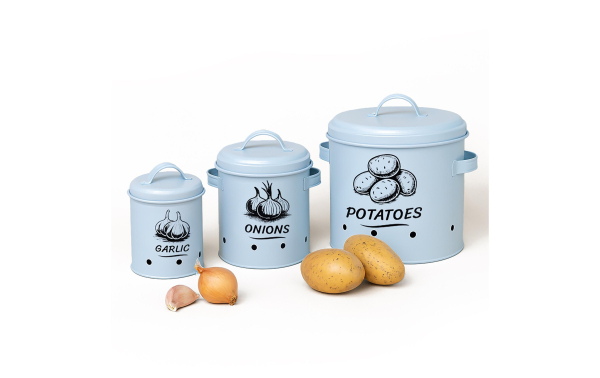 relaxdays Kartoffelbehälter 3er Set, Blau / 3er Set, Blau / Thema: Lebensmittelspender